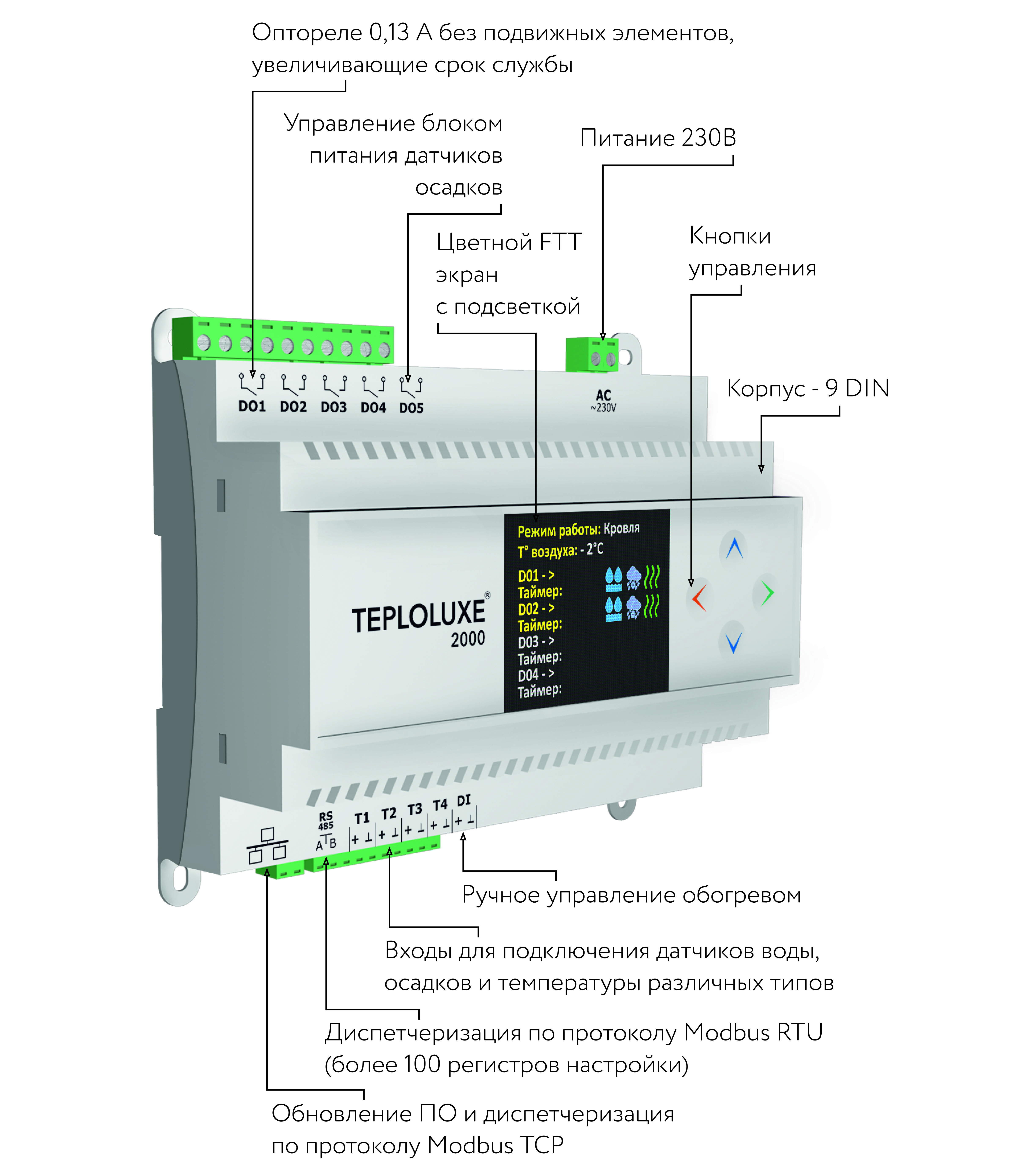 Предназначен для управления системами автоматического обогрева. Используется для управления системами антиобледенения кровли и открытых площадок, обогрева трубопроводов и резервуаров, а также системами обогрева помещений (электрическими нагревательными кабелями,плёночными и другими электронагревателями).