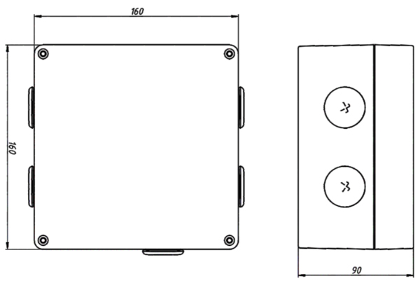 Корпус и крышка TermBox 160 выполнены из поликарбоната, фиксируются межу собой винтами из нержавеющей стали. Пыле- и влагозащиту обеспечивает уплотнитель, выполненный из неопрена. Для ввода кабелей в коробку используются сальники (в комплект поставки не входят) соответствующего диаметра и класса защиты (не ниже Ip68). Неиспользуемые отверстия закрываются заглушками М25 (входят в комплект). Материал изготовления заглушек – полиамид.