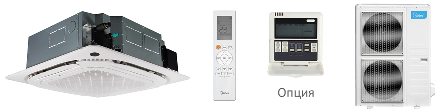 Серия кондиционеров кассетного типа с технологией Full DC inverter. Устанавливается в потолочную конструкцию открытым или закрытым способом. Отлично подойдет для офисных, торговых, складских и других коммерческих и производственных помещений. Есть возможность опционально установить модуль Wi-Fi для удаленного управления с телефона. ИК пульт с функцией Follow Me (локальный комфорт) в комплекте поставки. Опционально можно подключить проводной пульт управления.