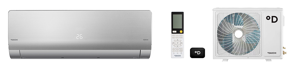 - Wi-Fi-контроллер в комплекте — удаленное управление со смартфона или ПК через приложение Daichi Comfort: голосовое управление, настраиваемые таймеры и расписания, управление по геолокации.