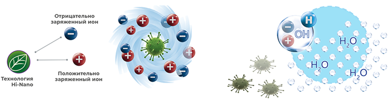• Ni Nano (ионизатор) — превосходно борется с бактериями, вирусами, плесенью и запахами и способствует удалению пыли и пыльцы, создавая положительно и отрицательно заряженные ионы