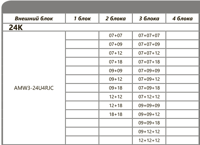 При подключении нескольких внутренних блоков, суммарная производительность которых превышает номинальную мощность наружного блока, при одновременной эксплуатации каждый из них будет работать со сниженной производительностью. Такой вариант подключения допускается в случае, когда внутренние блоки используются не одновременно (например, ночью – спальня, днем – гостиная).