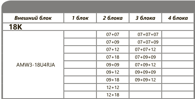 Рассчитан на подключение 3 внутренних блоков. Общая площадь охлаждения до 55 кв.м, комбинации внутренних блоков подбираются индивидуально. Внутренние блоки можно подобрать здесь.