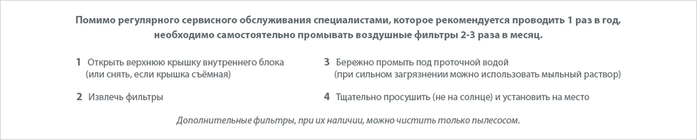 - Функция «анти-плесень» — автоматическая продувка внутреннего блока после работы кондиционера на охлаждение.