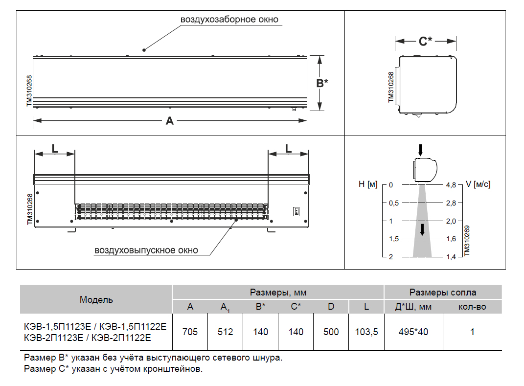 - Длина завесы 705 мм.