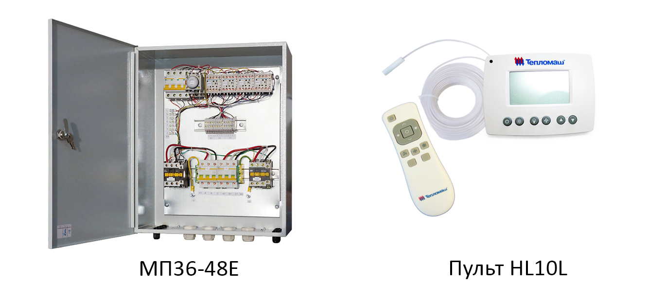Подключение через модуль МП36-48Е. Модуль предназначен для подключения одной завесы со степенью защиты IP54 к электрической сети и управления с помощью выносного пульта HL10L. К одному пульту HL10L можно подключить до двадцати завес и модулей МП36-48Е.