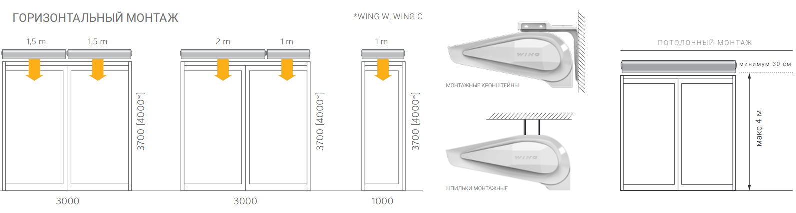 Тепловая завеса с электрическим нагревателем WING II E100 AC — обновлённая версия завес WING с усовершенствованной конструкцией корпуса. Сочетание уникального современного дизайна и высокой эффективности. Устанавливается над проемами высотой до 4 м, создавая воздушный барьер для холодного уличного воздуха, и сохраняя комфортный микроклимат внутри помещения.