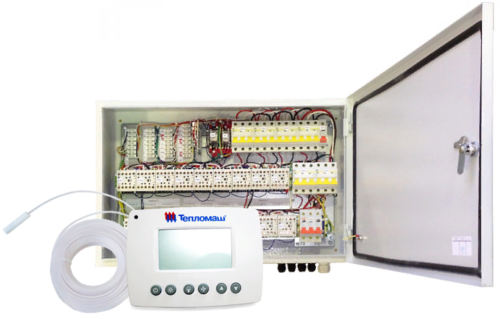 | Регулирование подводимой тепловой мощности в зависимости от температуры воздуха внутри помещения | Защита теплообменников от низких температур | Регулирование теплоотдачи завесы для поддержания заданной температуры в помещении | Включает завесу при открывании ворот | Модуль подключения влагозащищенных завес IP54 | Блок коммутации и управления завес с IP54 | Пульт управления завесами |