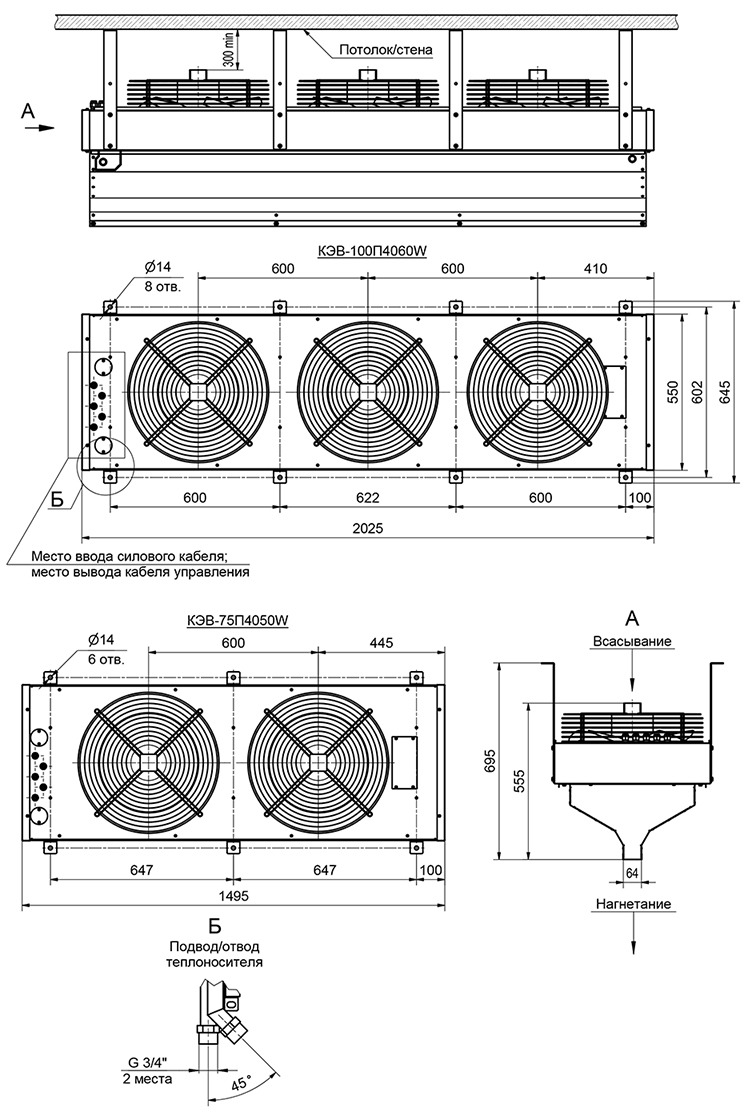 Водяная тепловая завеса Тепломаш КЭВ-75П4050W серии 400 IP54 Промышленная