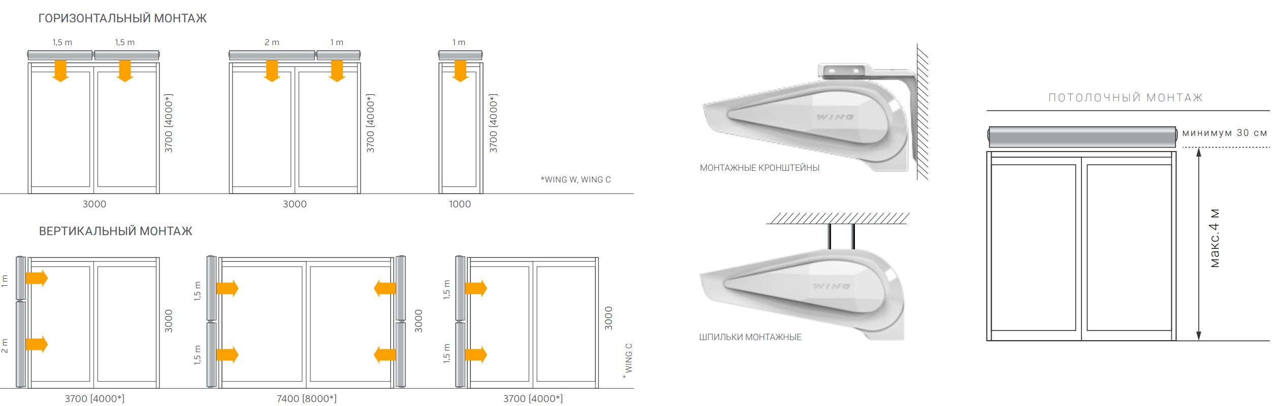 - Горизонтальный и вертикальный монтаж — установка над проемом или сбоку от него.