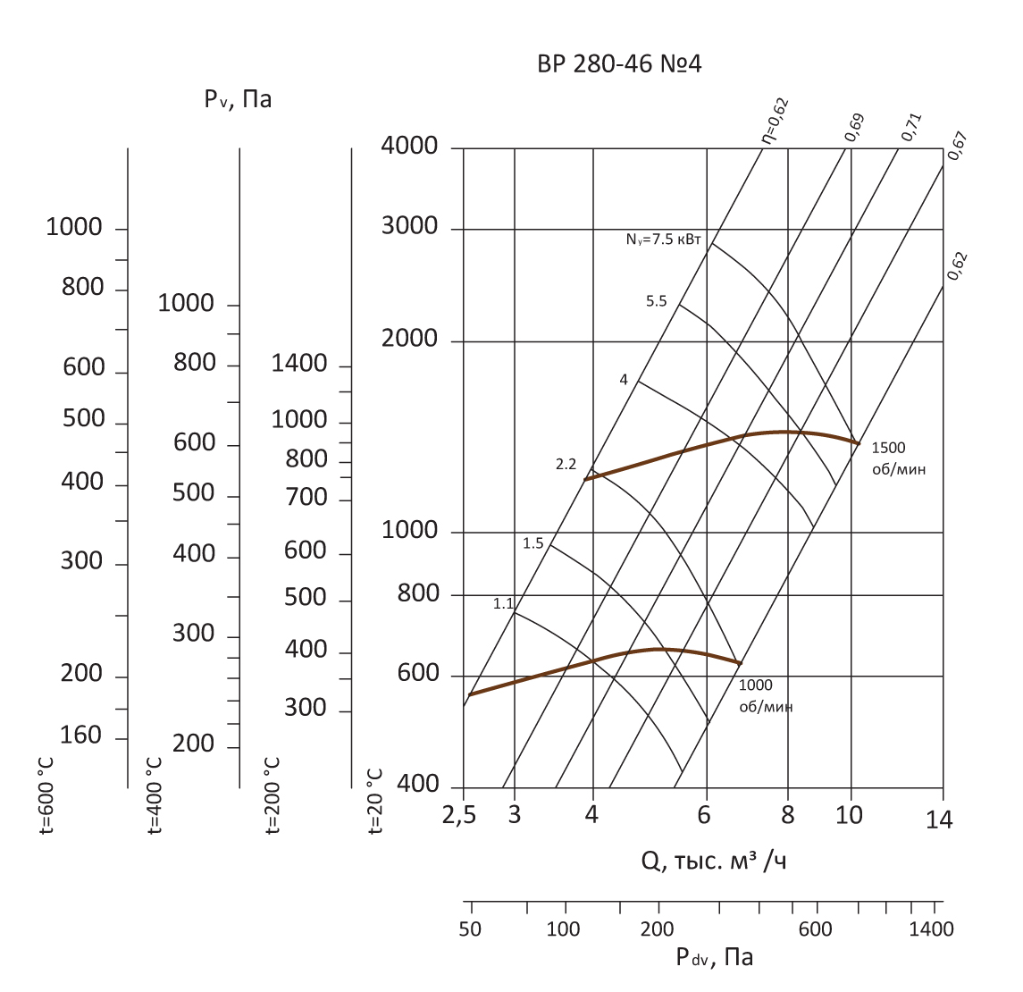 Радиальный вентилятор среднего давления ВР 280-46 / №4,0 / 1,5 кВт / 1000 об./мин. / Прав / 0°