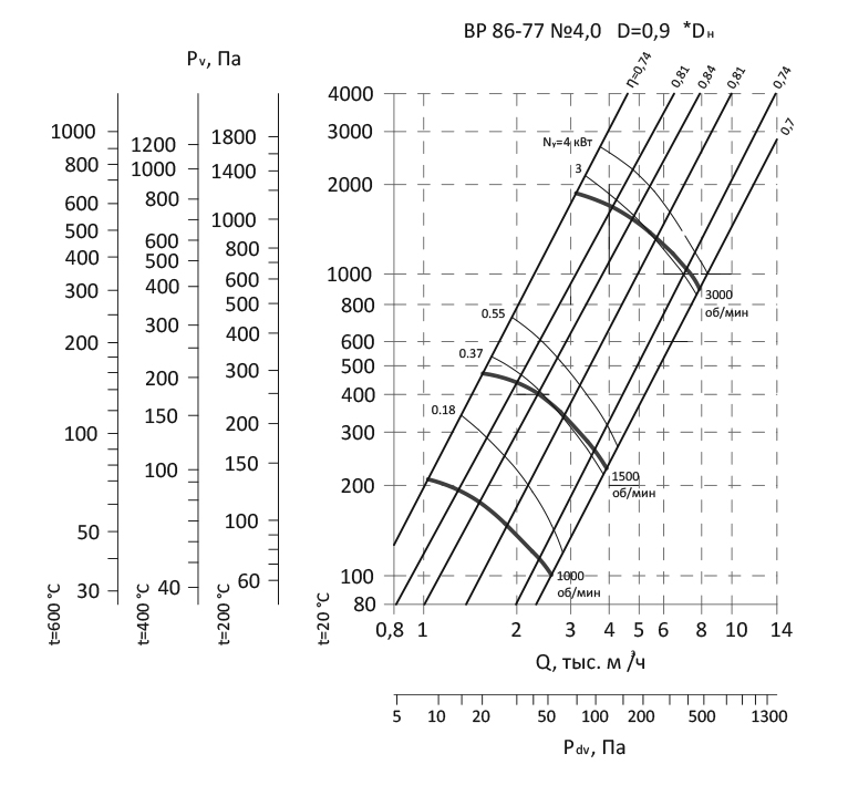 Радиальный вентилятор низкого давления ВР 86-77 / №4,0 / 4 кВт / 3000 об./мин. / Прав / 0°